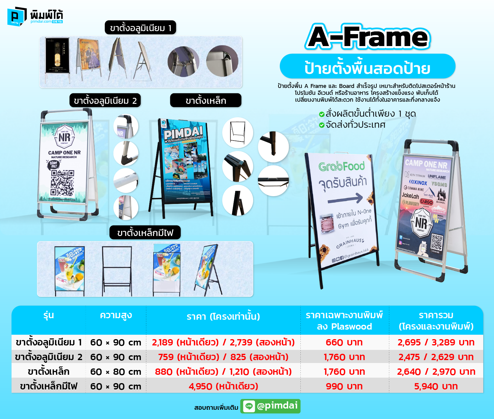 ป้ายโฆษณาตั้งพื้น เคลื่อนย้ายง่าย ราคาถูก (A frame)
