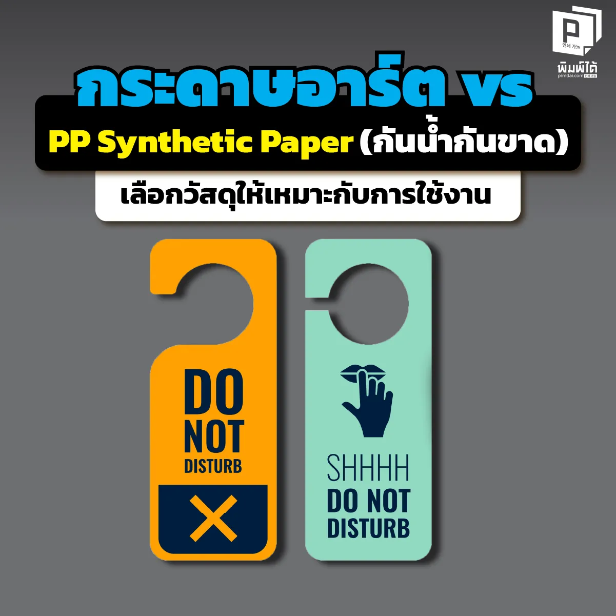ป้ายแขวนประตู กระดาษอาร์ต vs PP Synthetic Paper (กันน้ำกันขาด): เลือกวัสดุให้เหมาะกับการใช้งาน (ศึกชิงแชมป์งานพิมพ์: ถูกแต่เปื่อย หรือ แพงแต่ทน?)