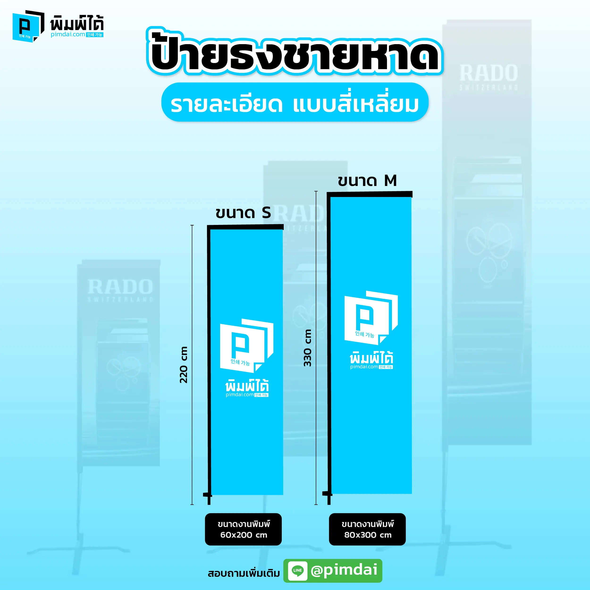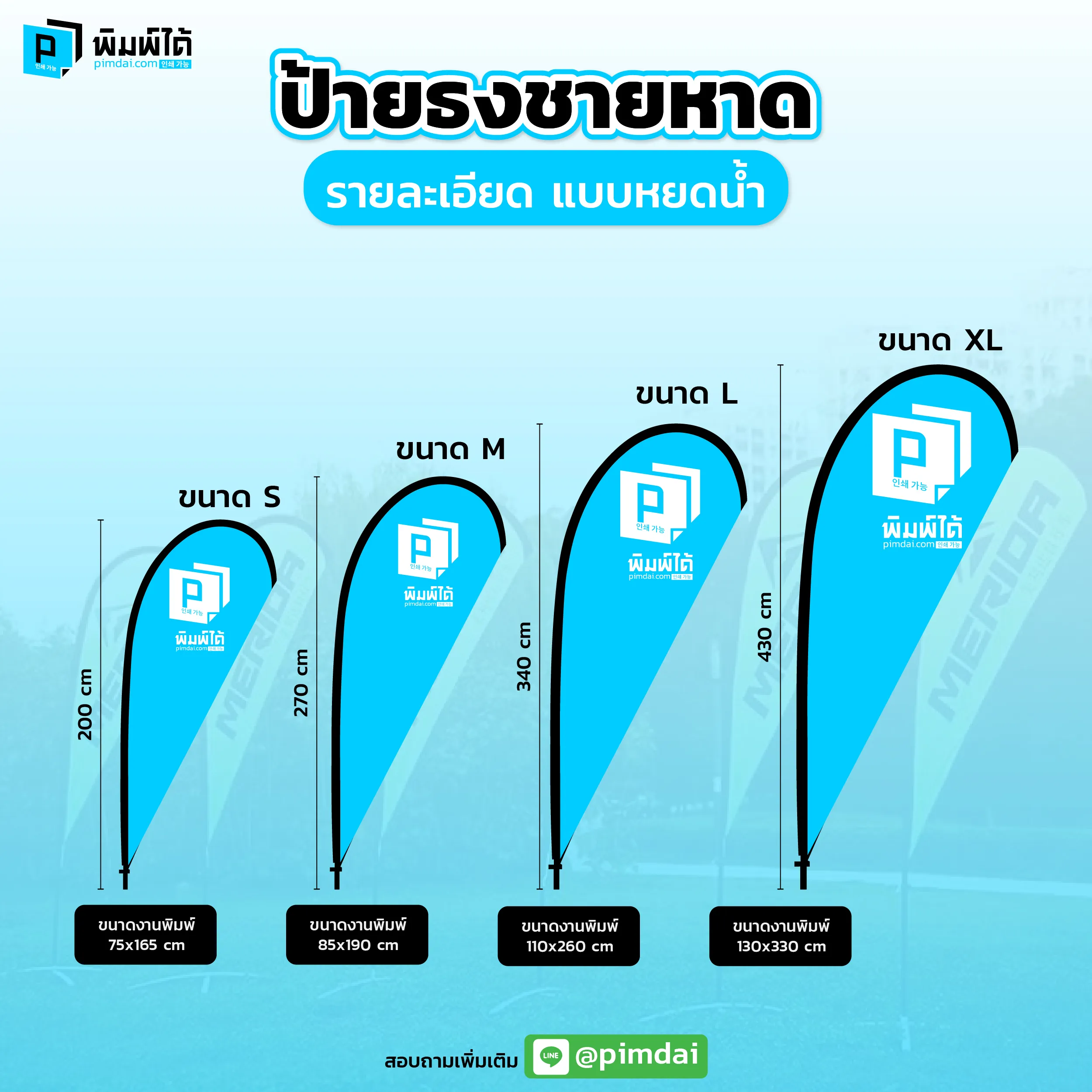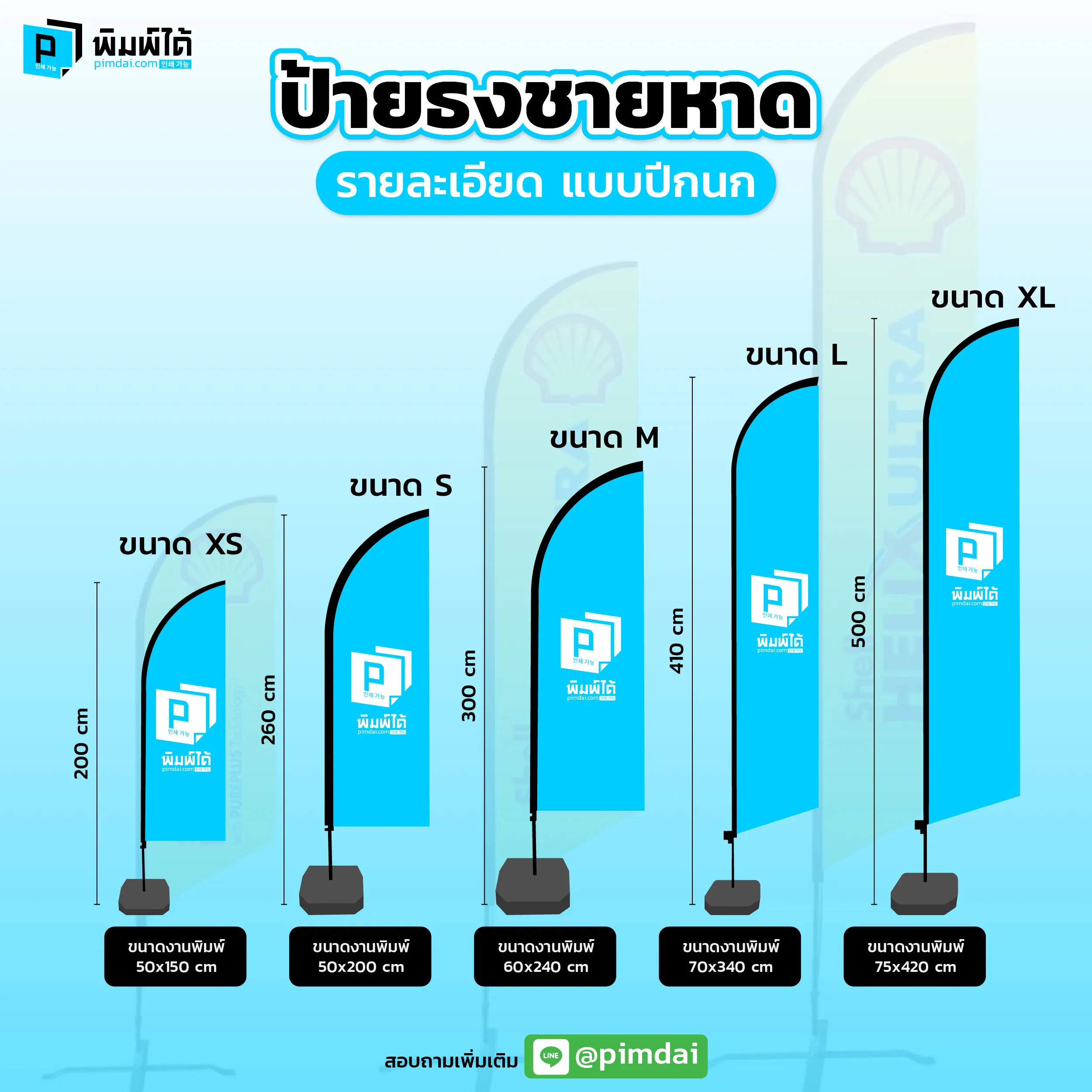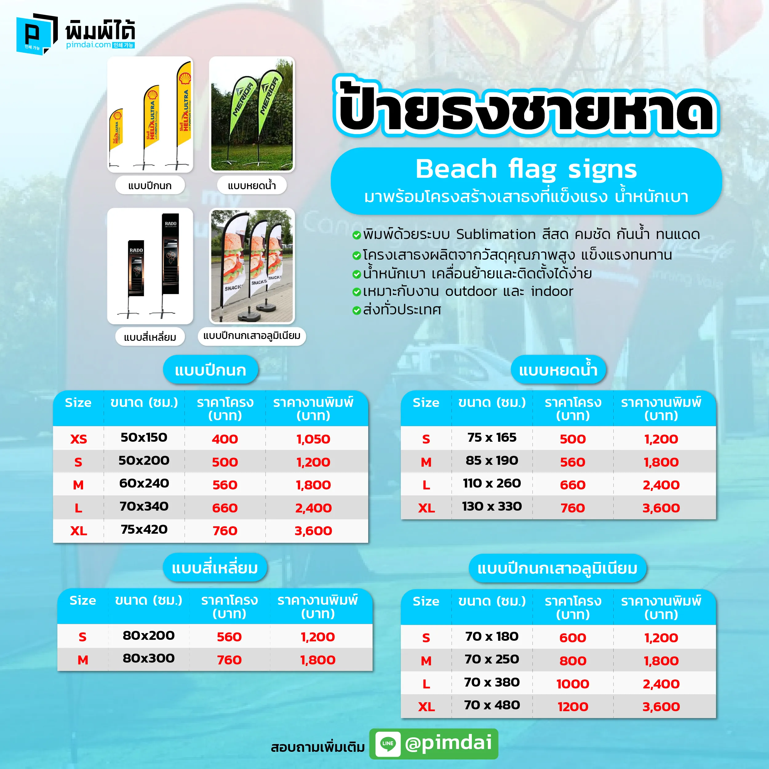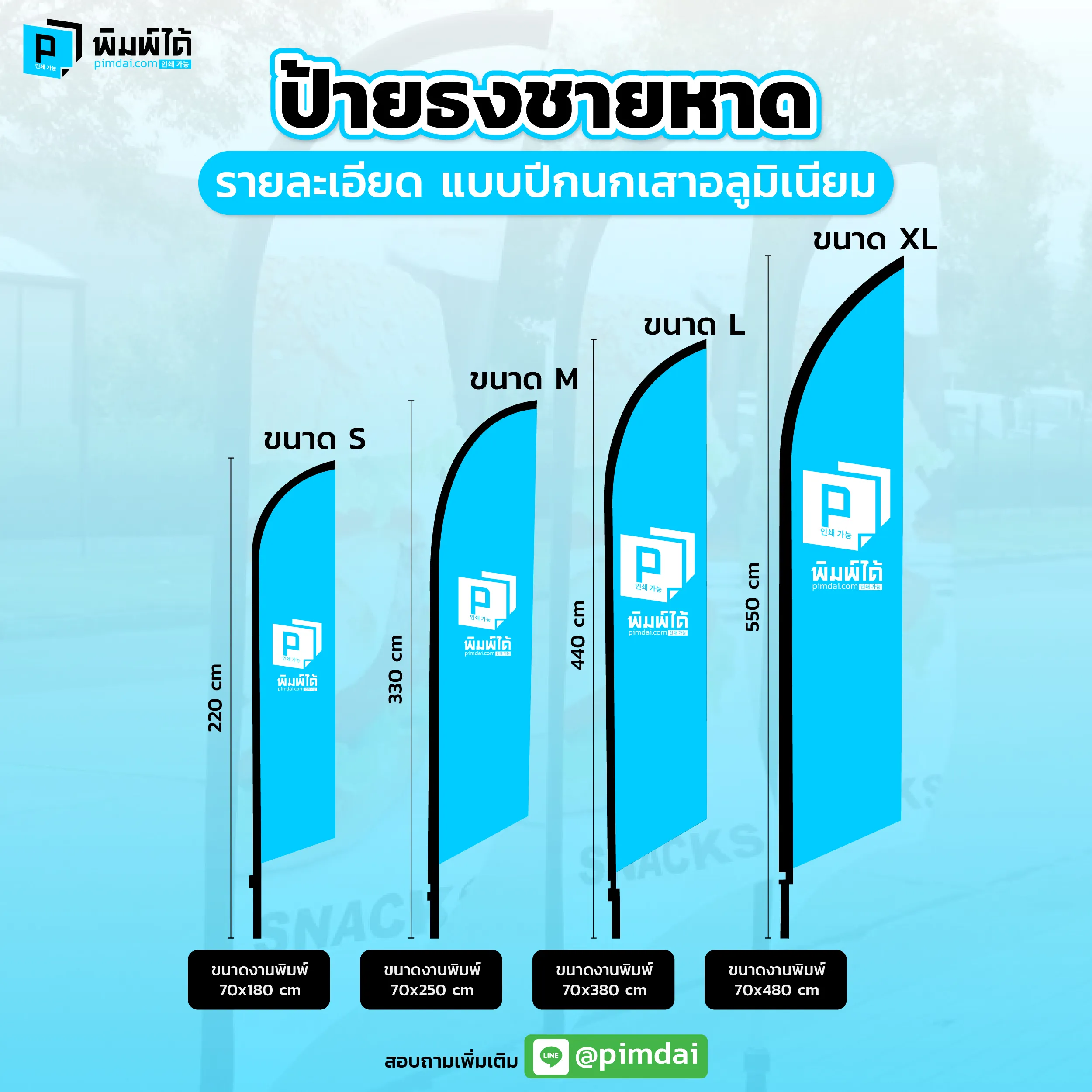 ธงชายหาด หรือ Beach Flag เหมาะสำหรับใช้ในงานอีเว้นท์, โปรโมทร้านค้า, โปรโมชั่นหน้าร้าน หรือบูธแสดงสินค้า ด้วยดีไซน์ทันสมัย สามารถเคลื่อนย้ายและติดตั้งได้ง่าย มาพร้อมโครงสร้างเสาธงที่แข็งแรง น้ำหนักเบา และงานพิมพ์คมชัดทุกเฉดสี รองรับการใช้งานทั้งภายในและภายนอกอาคาร