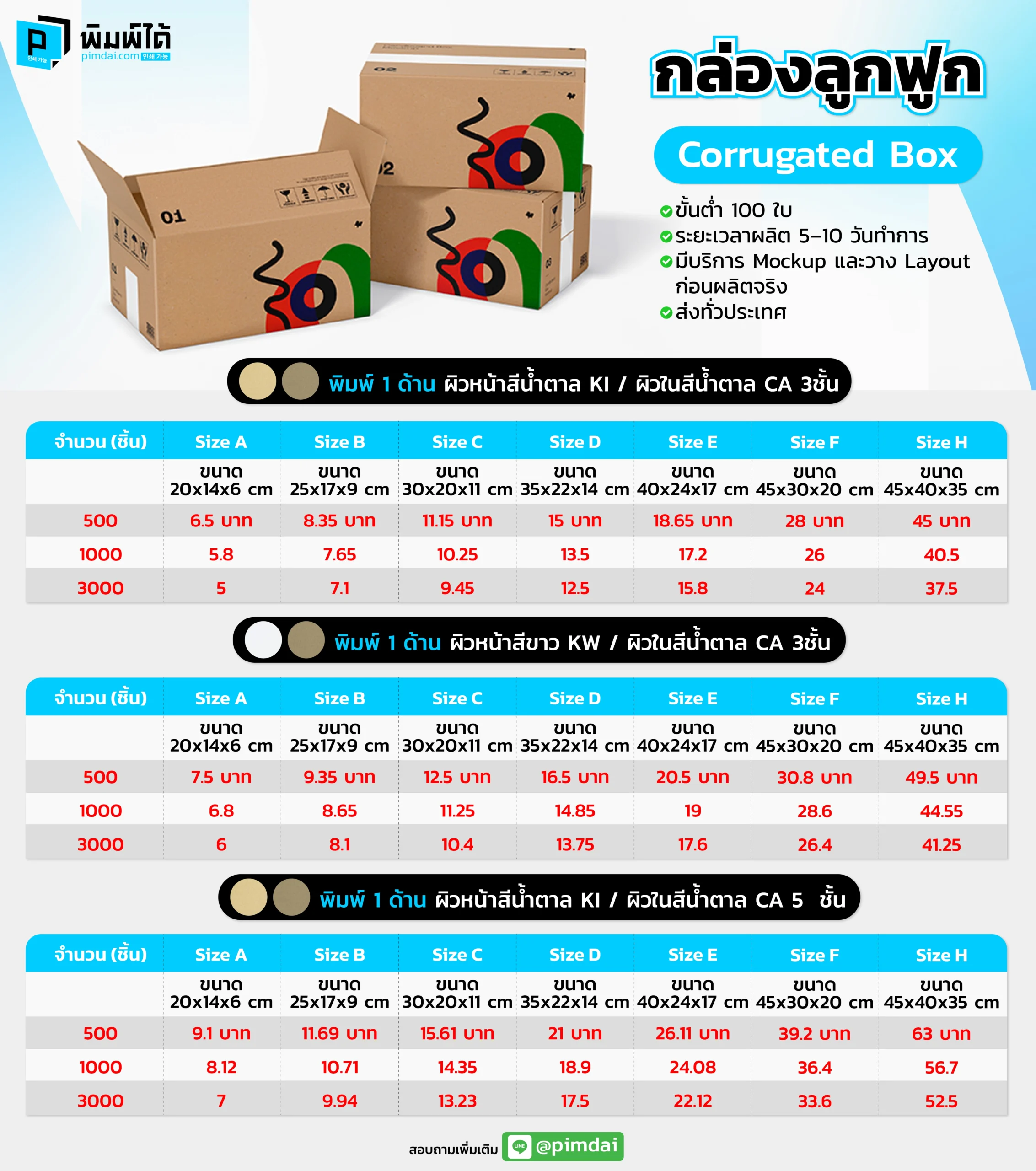 - บางร้านอาจมีส่วนลดสำหรับการสั่งผลิตกล่องลูกฟูกจำนวนมาก