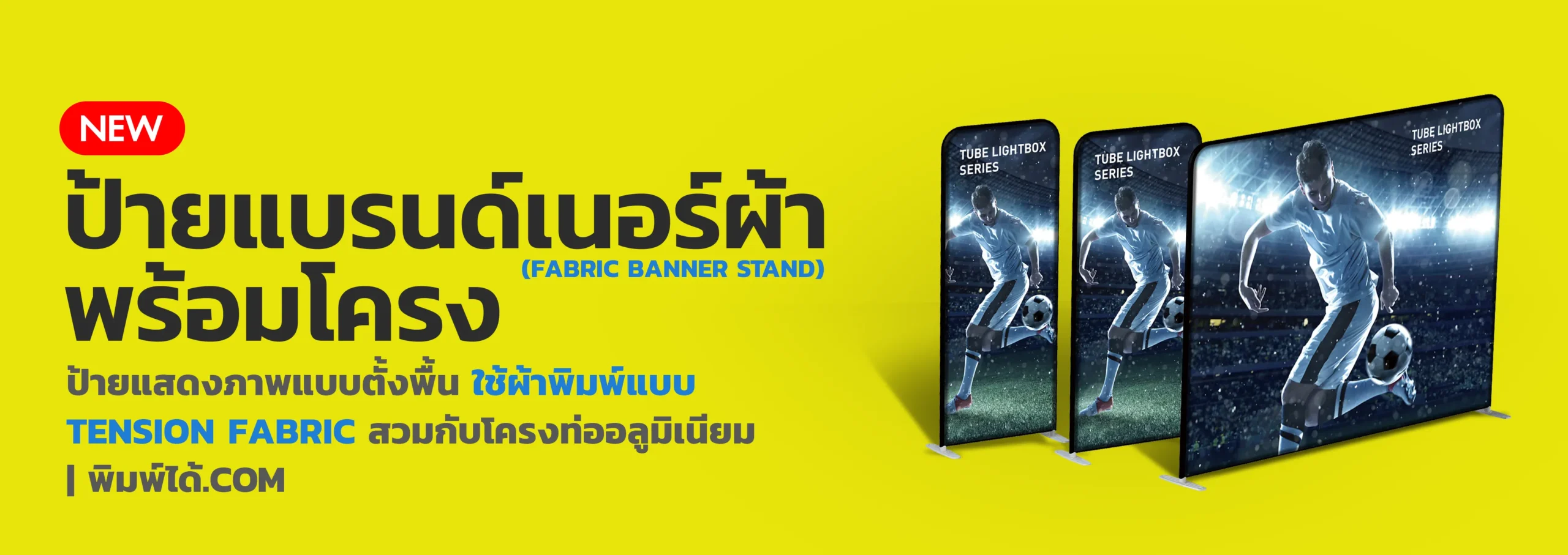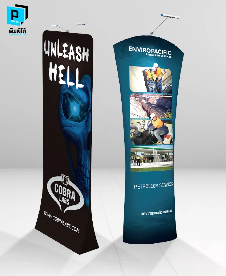 ป้ายแบรนด์เนอร์ผ้าพร้อมโครง Fabric Banner Stand คือป้ายแสดงภาพแบบตั้งพื้น ใช้ผ้าพิมพ์แบบ Tension Fabric สวมกับโครงท่ออลูมิเนียม เหมาะสำหรับใช้โปรโมตสินค้า แบรนด์ หรือโปรโมชั่น ในพื้นที่จำกัด เช่น หน้าร้าน, ในบูธ, หรือพื้นที่ประชาสัมพันธ์ต่างๆ