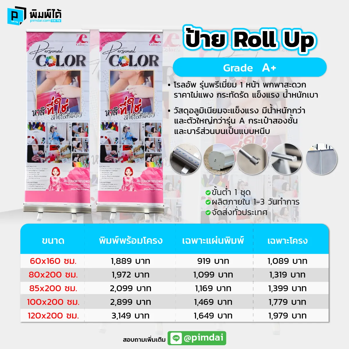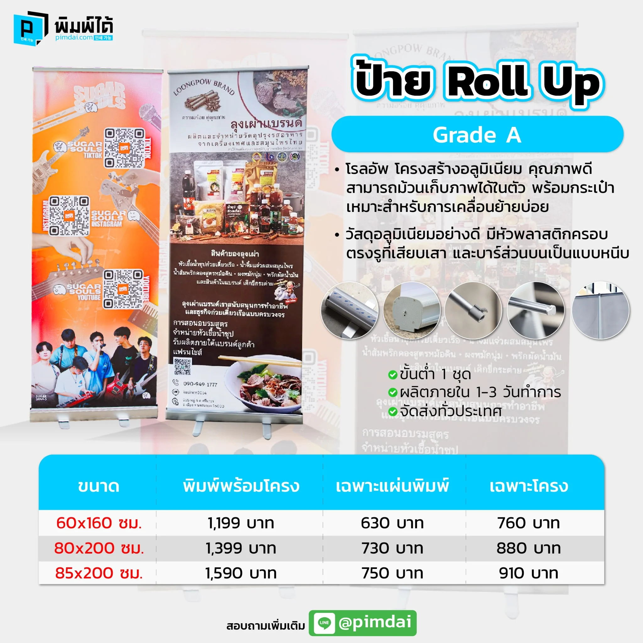 บริการออกแบบป้าย Roll up ของ pimdai.com อาจมีรายละเอียดดังนี้: