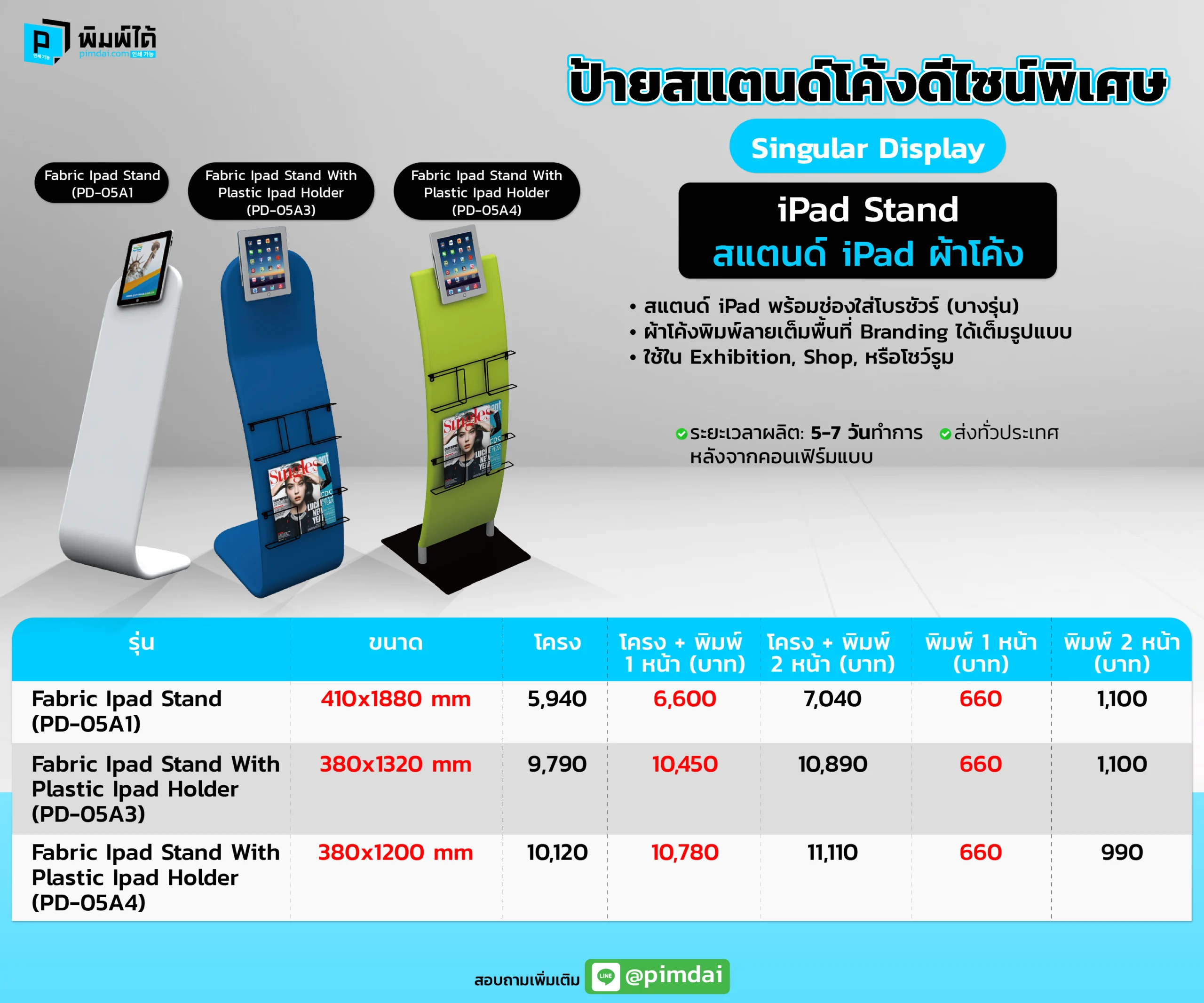 Pimdai เลือกใช้ โครงสร้างอลูมิเนียม ที่มีน้ำหนักเบาแต่แข็งแรงเป็นพิเศษ ควบคู่ไปกับ ผ้า Tension Fabric คุณภาพสูง และใช้เทคนิคการพิมพ์แบบ Dye-Sublimation ที่ให้สีสันสดใส คมชัด ความละเอียดสูง ทำให้ภาพที่ได้มีความสวยงาม เรียบตึงเป็นผืนเดียวอย่างไร้รอยต่อ ช่วยยกระดับภาพลักษณ์ของแบรนด์ให้ดูโดดเด่น