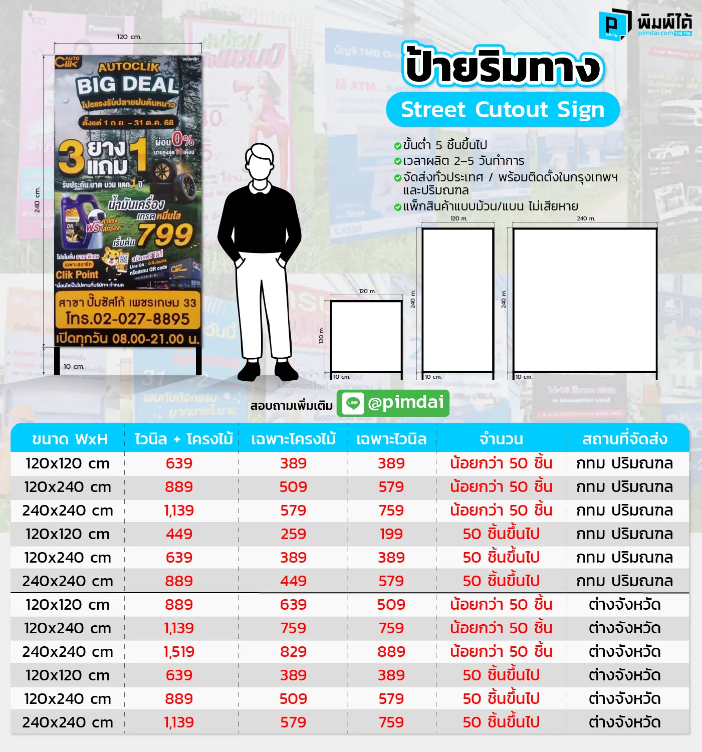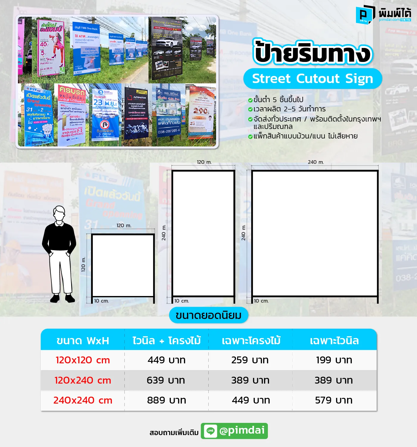 pimdai.com มักจะมีบริการออกแบบให้ลูกค้าได้ แม้ว่าลูกค้าจะไม่มีแบบมาเองก็ตาม ซึ่งบริการนี้จะช่วยให้ลูกค้าได้ป้ายริมทางที่มีดีไซน์ที่สวยงาม โดดเด่น และตรงกับความต้องการมากที่สุด