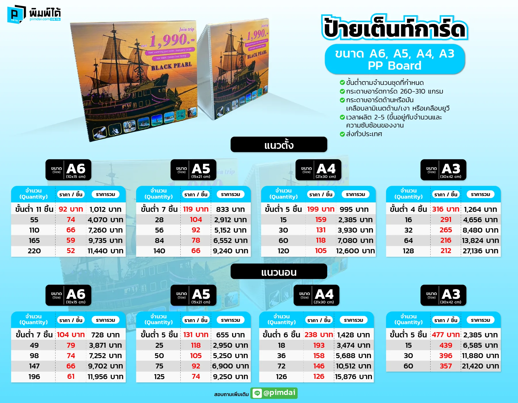 ป้ายเต็นท์การ์ดมีขนาดมาตรฐานอะไรบ้าง และสามารถออกแบบเองได้หรือไม่?