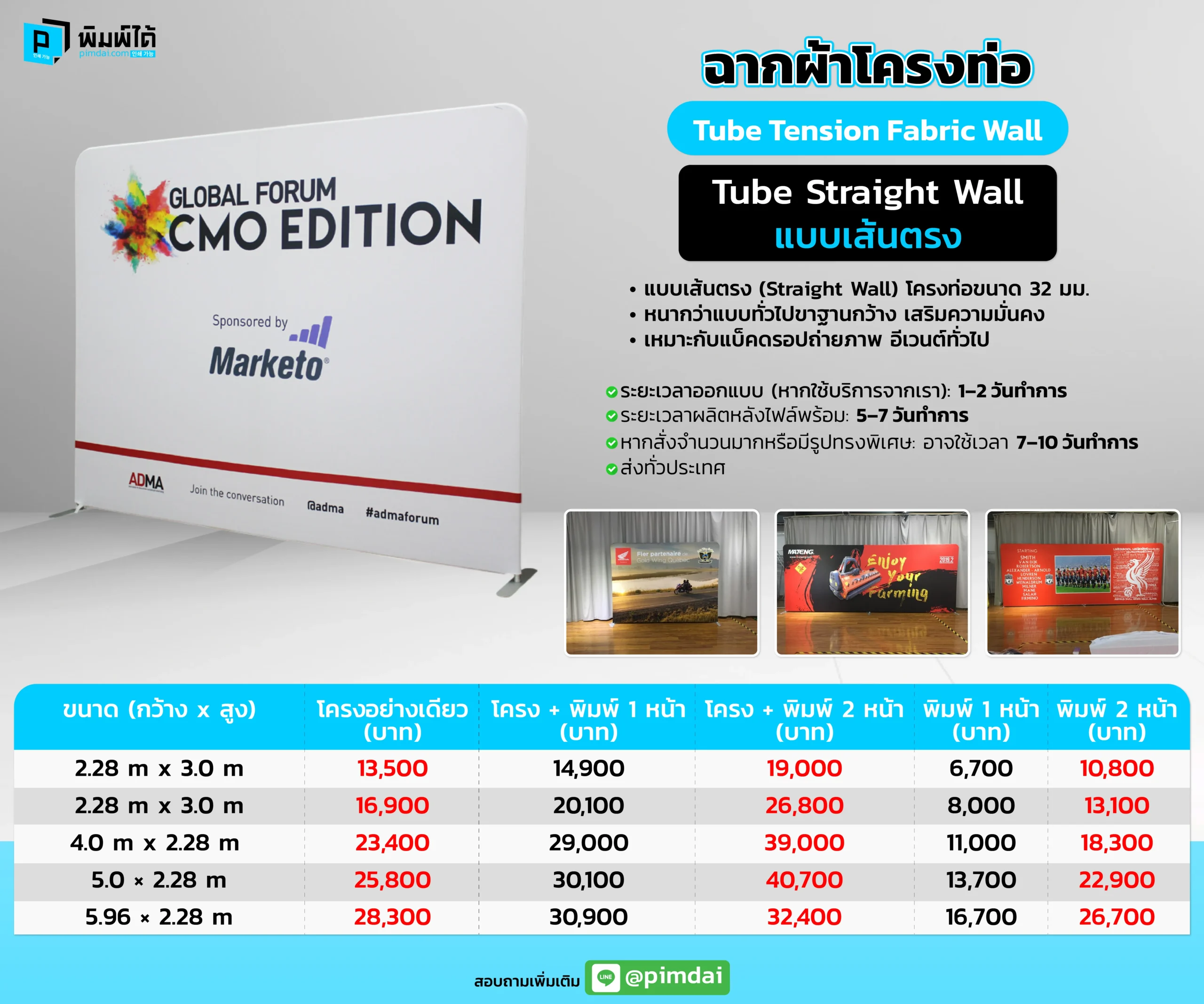 - ผ้า: Tension Fabric พิมพ์สีสด (Fire Retardant)